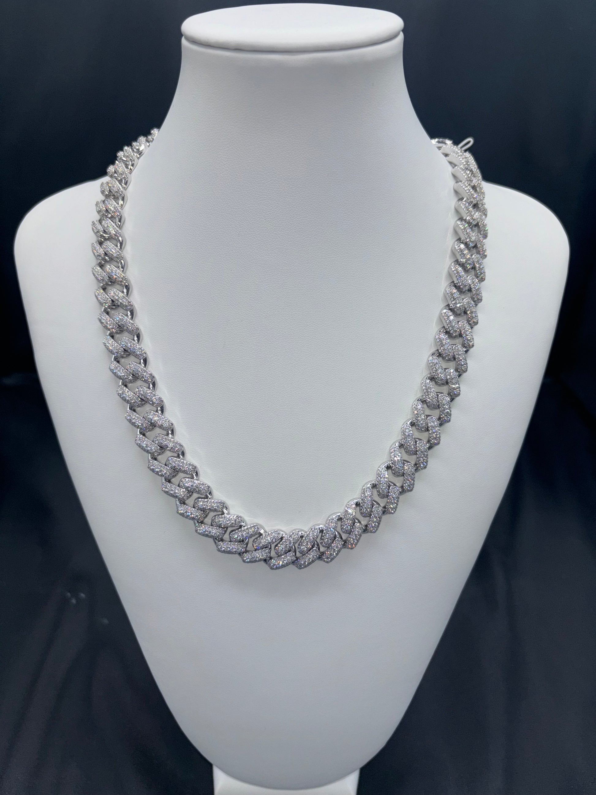 The VVS Moissanite Diamond 16mm, 20", Cuban is a remarkable piece of jewelry that features VVS Moissanite Diamonds set in a Cuban Link Chain.